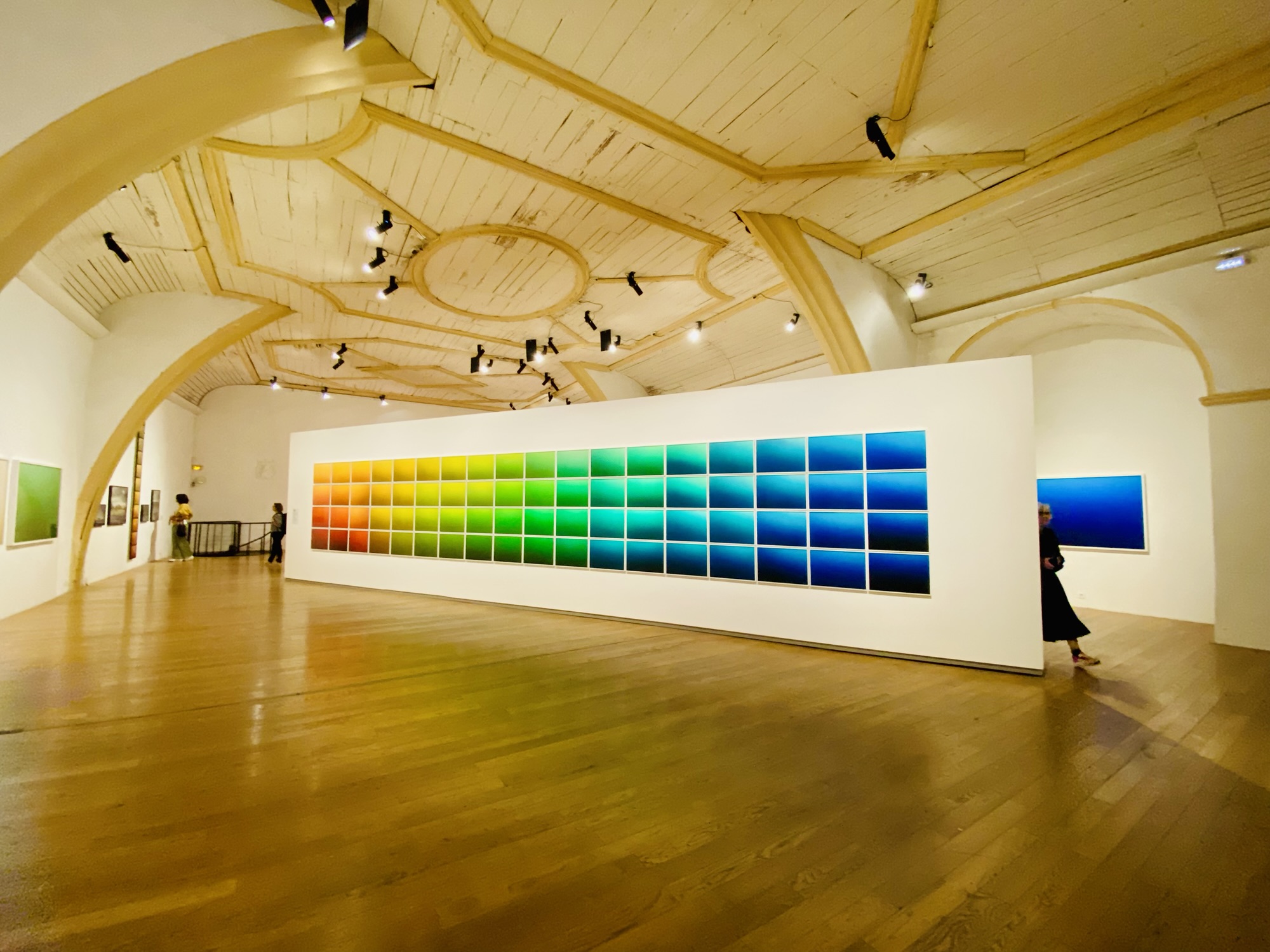 a colorful expanse as vast as the eye can see. Through photography, monochrome painting joins landscape painting, yet vegetal and mineral elements are expressed not through the romantic representation of a rock or a mountain, the impressionistic touches of a field of flowers or the scintillation of light on the surface of the ocean, but through color and light alone. This color is that of the microscopic which becomes visible through accumulation, floating pigments, dynamic and free, whose saturation increases with depth…”, writes Nicolas Floc’h.